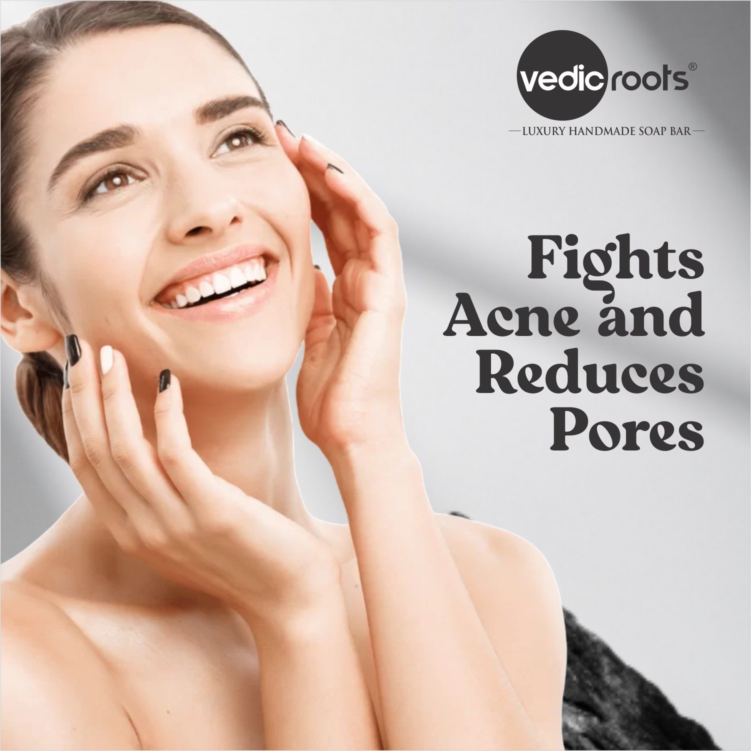 Vedic Roots Handmade Charcoal Soap makes your day, with clean and radiant skin. Wash your skin clean, fresher, and healthier every time using the purity of Ayurveda and the detoxifying power of charcoal. Infused with natural coconut oil, olive oil, and essential oils, charcoal soap brings in a high intensity of hydration and nourishment to the skin without messing with the natural moisture barrier of the skin.