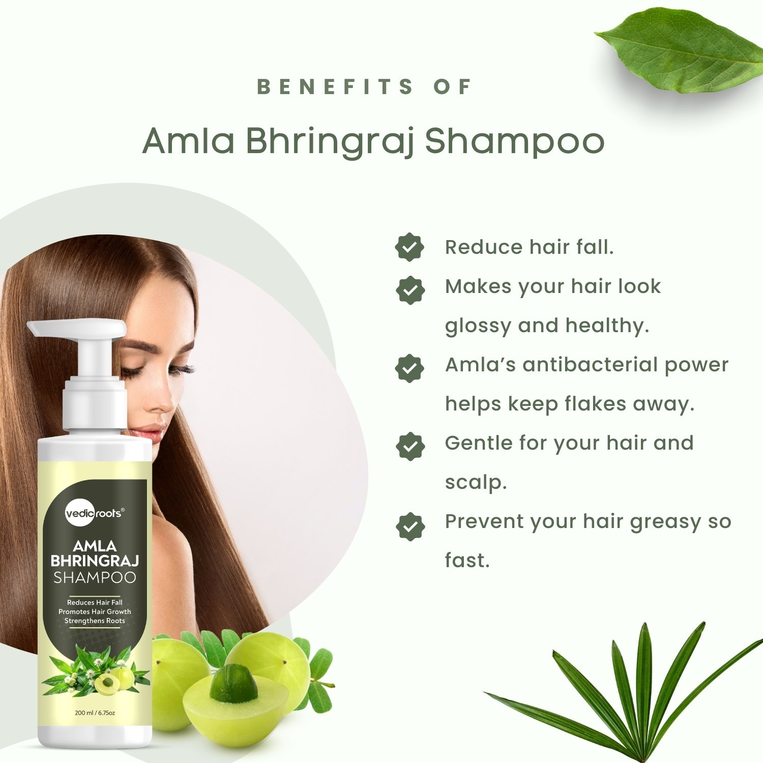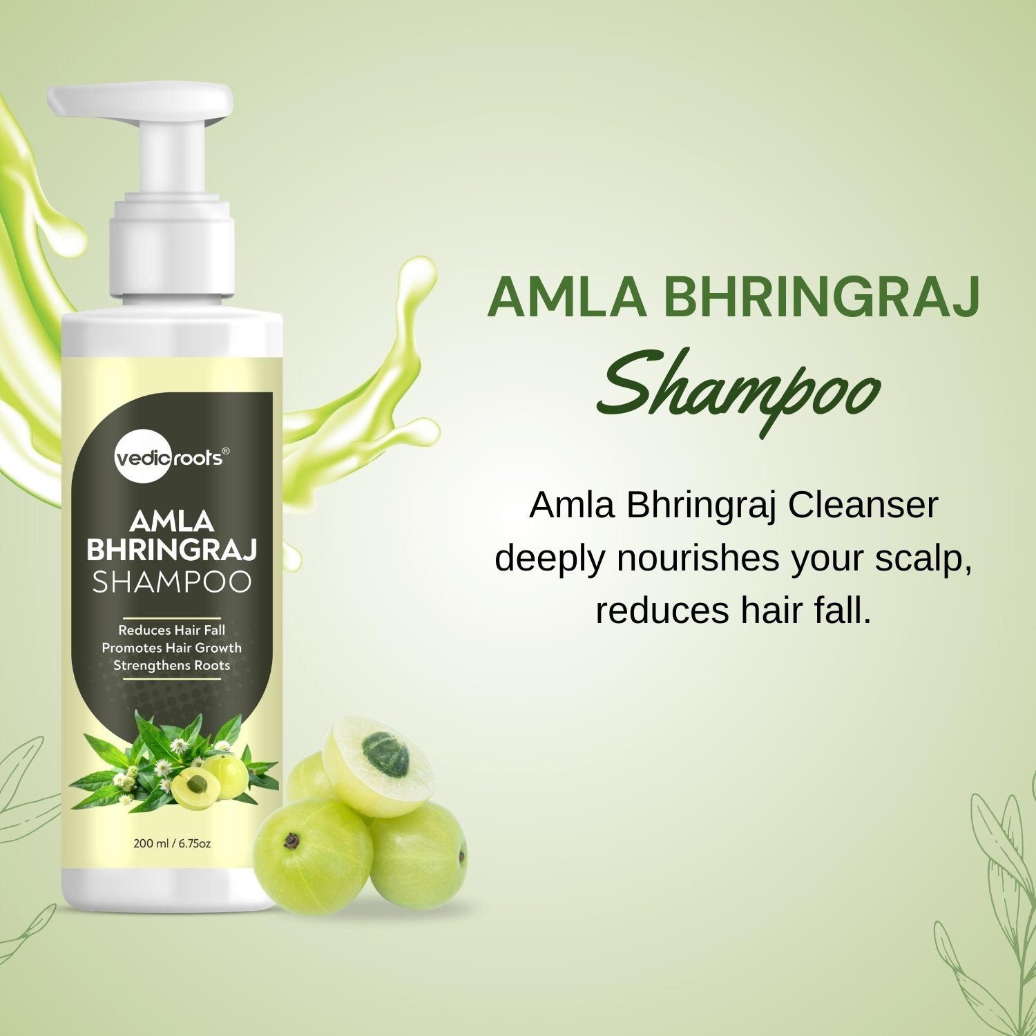 Vedic Roots Natural Amla Bhringraj Shampoo promotes natural hair growth and reduces dandruff. Saturated with the goodness of Amla, Bhringraj, and other nourishing botanicals, Amla and Bhringraj shampoo gently cleanses your scalp and restores the natural power and shine of your hair.