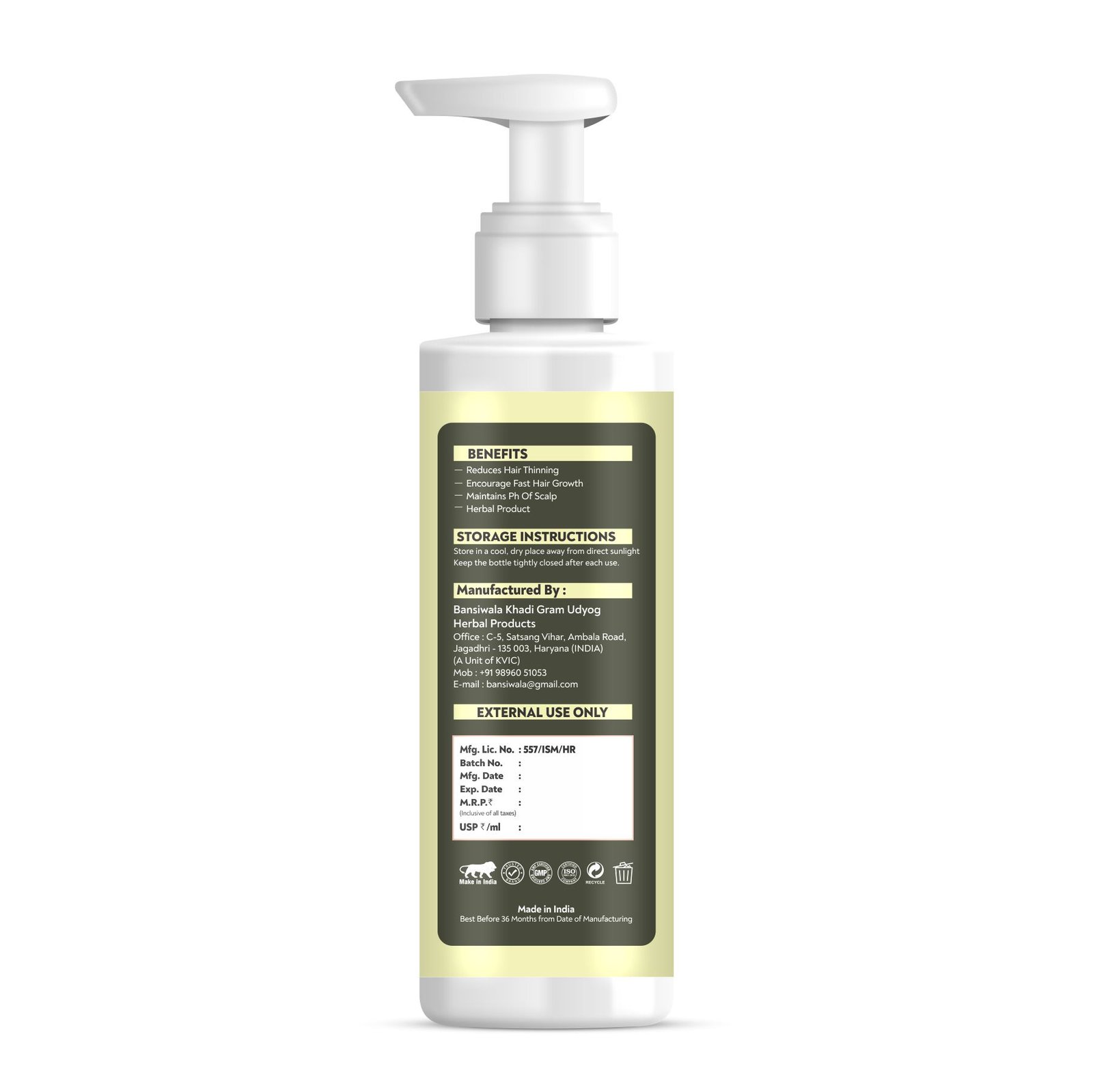 Anti-Dandruff Action: Antifungal due to Bhringraj and Vitamin C of Amla will prevent the irritation of the scalp, scabs, and dandruff of the scalp, ensuring a healthy scalp.